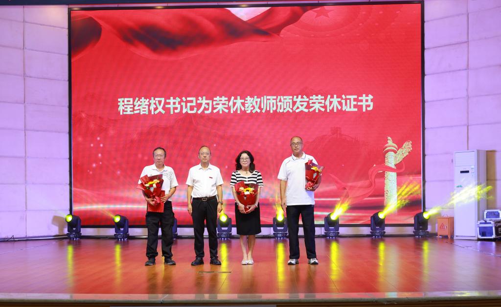 大会向2025年度光荣退休的12名教师致以崇高敬意。其中,陈绪权书记为4名荣休教师代表颁发了荣休证书。